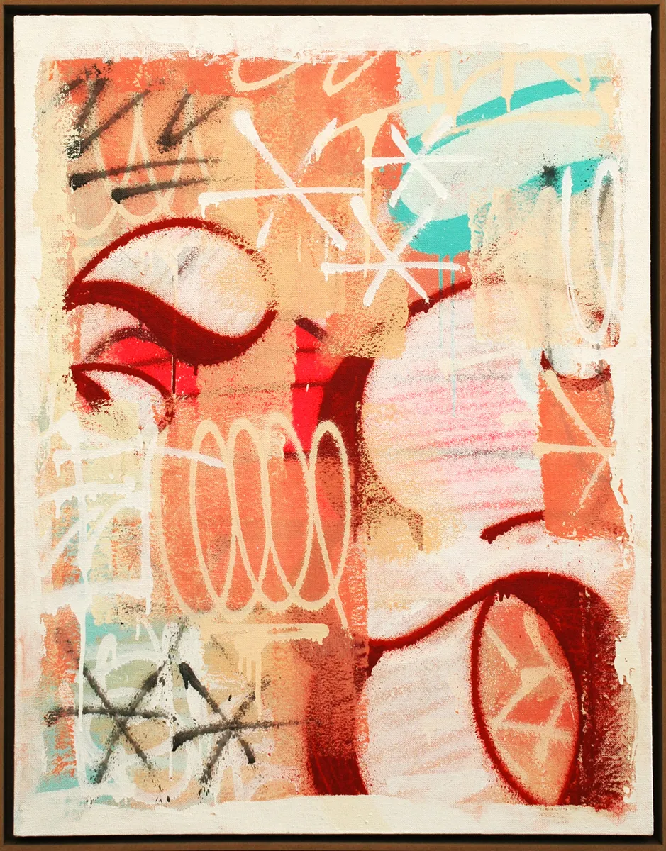 Acrylique et spray sur toile 90 x 70 cm Pièce unique Cornière en bois naturel (95 x 75 x 5 cm) Signée par l’artiste Certificat d’authenticité