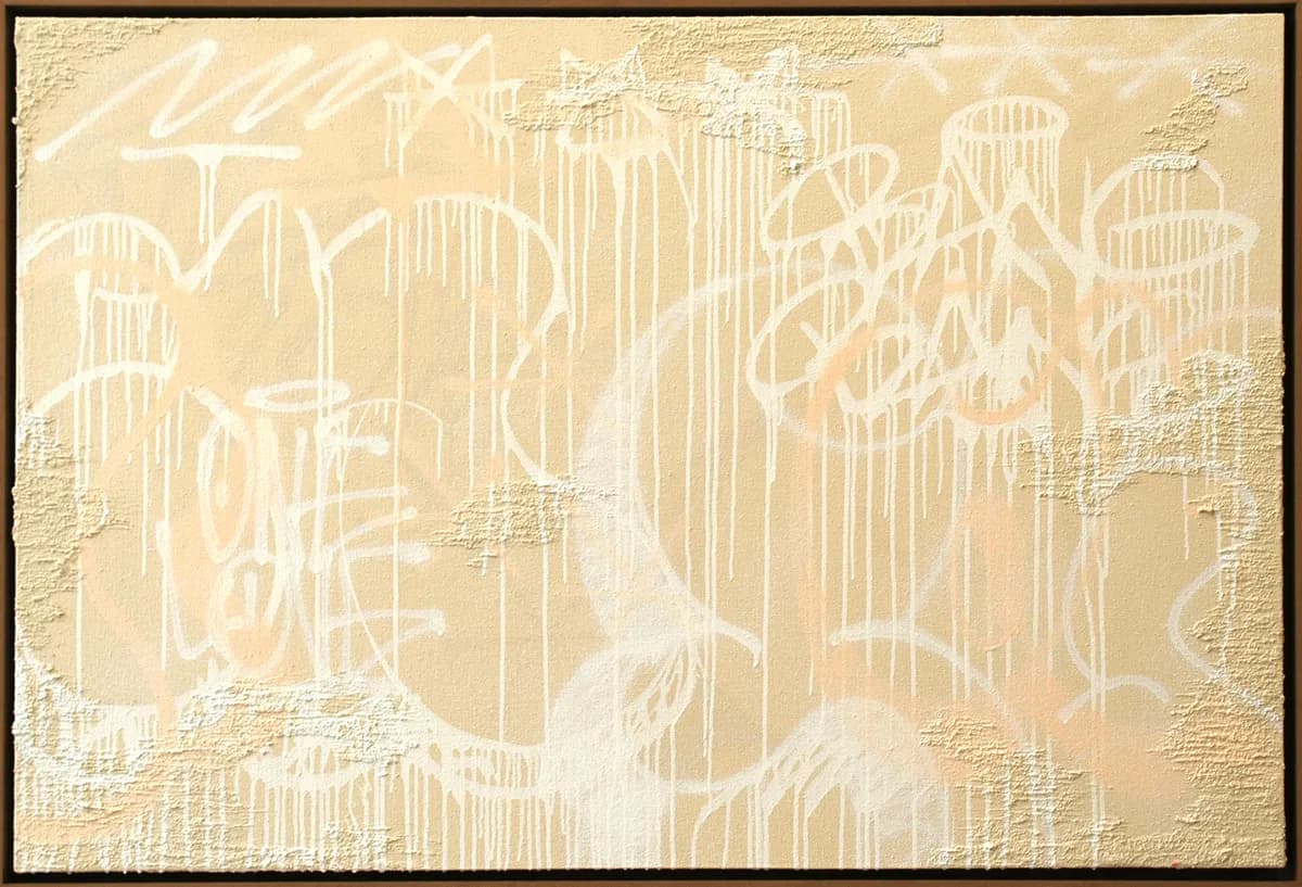 Acrylique et spray sur toile 80 x 120 cm Pièce unique Cornière en bois naturel (85 x 125 x 5 cm) Signée par l’artiste Certificat d’authenticité